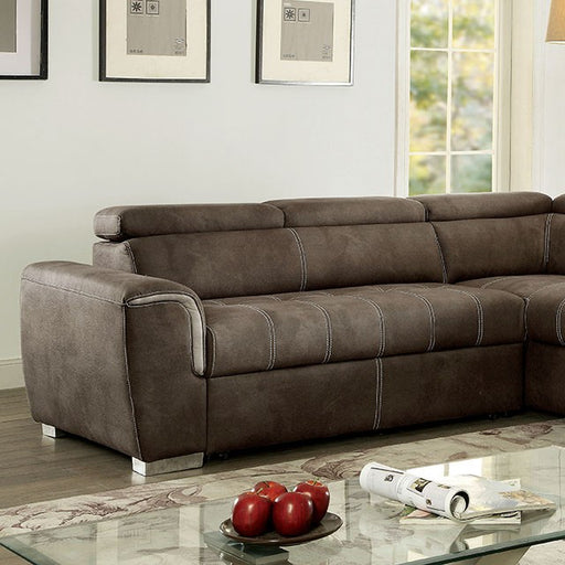 FOA EastSARIN Warm Gray Sectional, 129 1/2"L X 37 3/8"W X 32 1/4"H, 207lbs. Create a luxurious and sophisticated living room with this uniquely shaped sect...