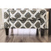 This accent chair features a beautiful diamond floral pattern against an ivory fabric. This is a pleasing addition of color and pattern to a room, than can be combined with a small throw pillow and bright blanket.