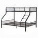 - This space-saving Caius twin over queen metal bunk bed meets all your needs and expectations. Features easy access guardrails, right facing built-in ladder and a metal tube support slat system. Accommodating a XL Twin and Queen mattress, this sturdy bunk bed will last through years of play.