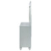 Transform your bedroom with the transitional elegance of our six-drawer dresser and its accompanying mirror. The dresser's vibrant silver metallic finish and fret work detail on the front panels exude modern glam, while the crystal-like pulls and black felt-lined top drawers add a touch of luxury. Delicate bun feet complete this exquisite dresser, making it a stunning showpiece. The rectangular mirror, with its decorative fret work frame and beveled edges, enhances the glamor and radiates sophistication, perfect as a standalone piece or paired with the dresser.